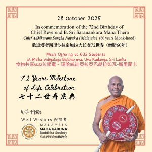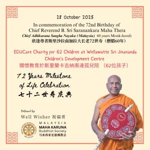 Under the guidance of Chief Rev B. Sri Saranankara Maha Thera, Malaysia Maha Karuna Buddhist Society initiated ๐ญ๐ก๐ ๐๐ง๐ญ๐๐ซ๐ง๐๐ญ๐ข๐จ๐ง๐๐ฅ ๐๐๐ญ๐ก๐ข๐ง๐