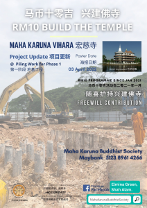 ๐๐ ๐๐ซ๐ ๐ง๐จ๐ฐ ๐๐ญ ๐ญ๐ก๐ ๐๐๐๐๐ ๐ ๐จ๐ ๐ญ๐ก๐ ๐ฉ๐ซ๐จ๐ฃ๐๐๐ญ @ ๐๐ข๐ฅ๐ข๐ง๐ ๐๐จ๐ซ๐ค. One may contribute RM10 or any amount as per own wish. This drive will continue until the Maha Karuna Vihara is completed in estimated 2 years time.