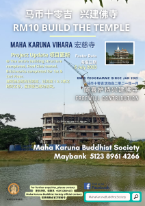 【RM10 Build The Temple 】drive is launched since January 2021 being a platform for everyone to participate in establishing a Buddhist vihara. No amount is too small in supporting a temple establishment.