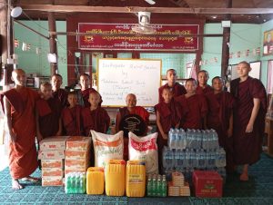 At these locations, support has been provided for the deceased and injured monks, novices, and nuns. The support provided to each monastery and nunnery is approximately 1,000,000 MMKyats per monastery.