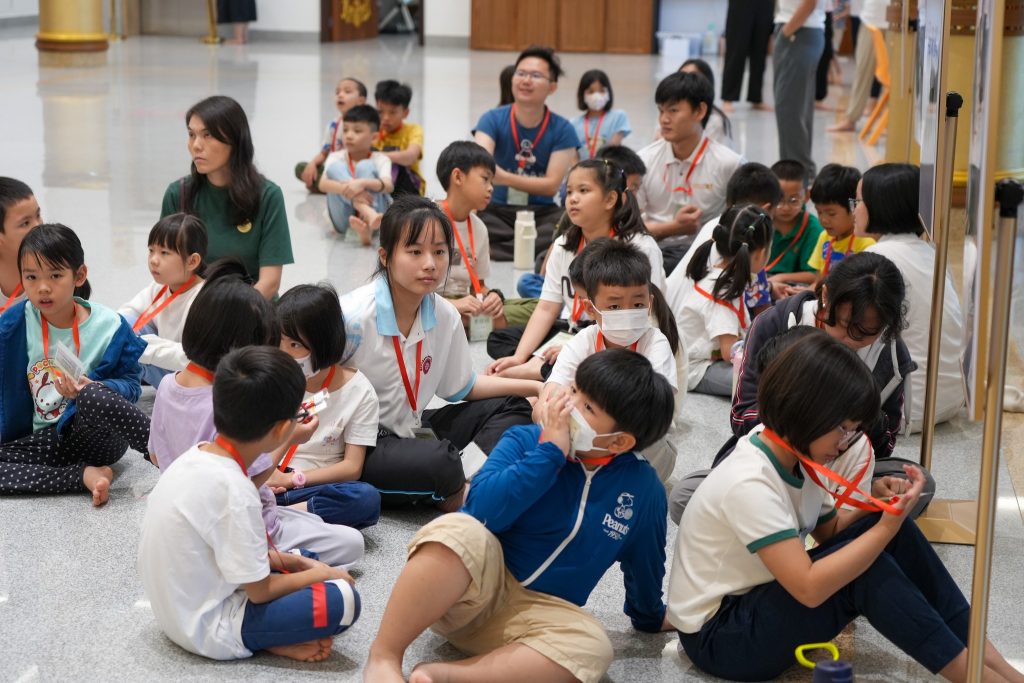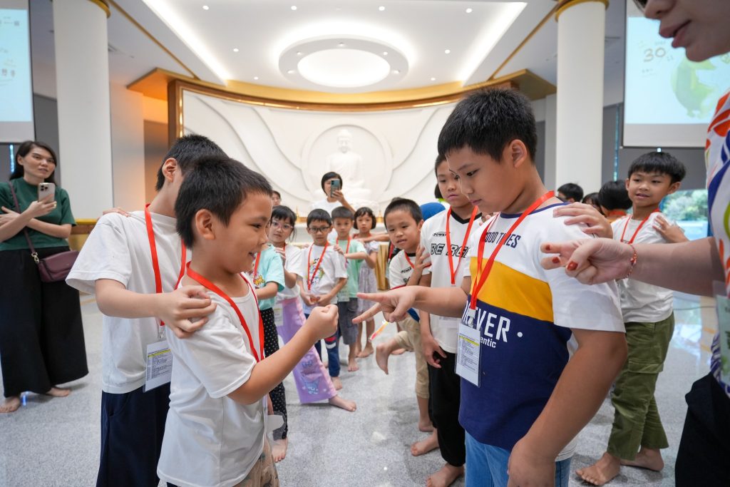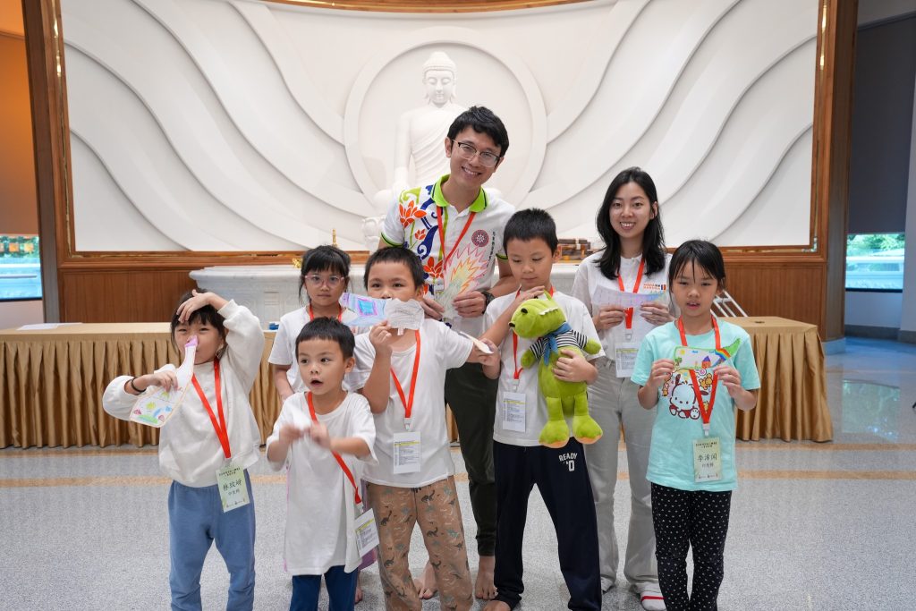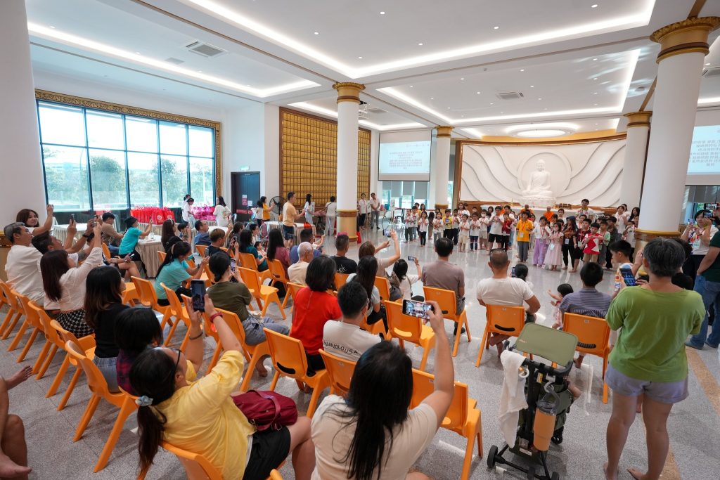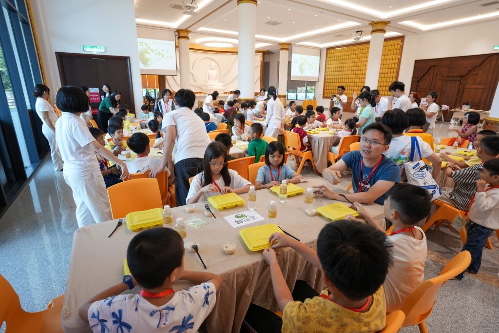 清晨7点30分,孩子们牵着父母的手陆续抵达。小手捧着早餐,小眼睛闪着好奇。平日静谧的精舍,一瞬间因笑声、游戏、交谈而温热,仿佛阳光洒进殿堂,生命与欢乐在空气中跳动。