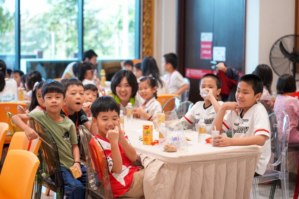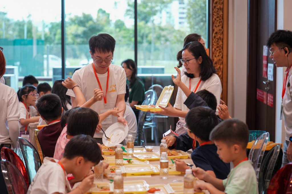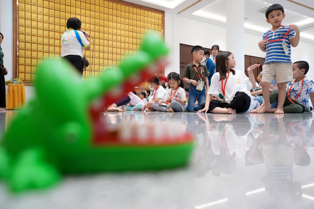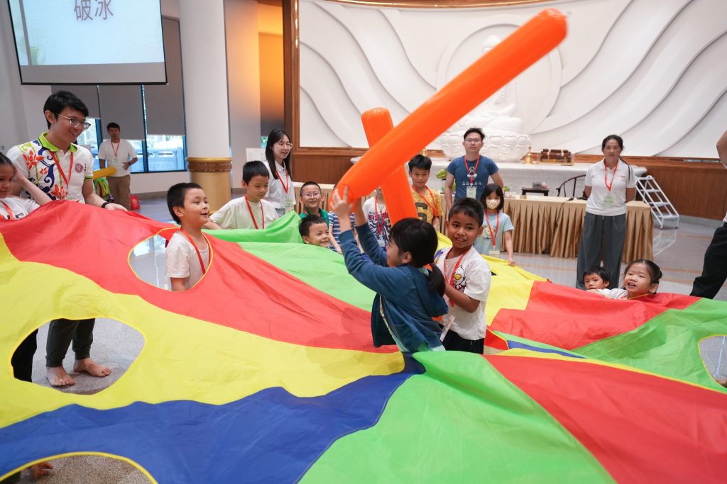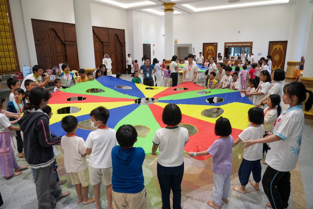 清晨7点30分,孩子们牵着父母的手陆续抵达。小手捧着早餐,小眼睛闪着好奇。平日静谧的精舍,一瞬间因笑声、游戏、交谈而温热,仿佛阳光洒进殿堂,生命与欢乐在空气中跳动。