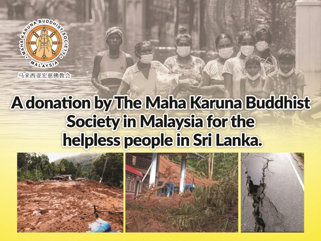 【马来西亚宏慈佛教会】𝟮𝟬𝟮𝟱年𝟭𝟮月𝟮日 | 第一天 — 大众热心送上物资 支援斯里兰卡水灾灾黎 宏慈佛教会陆续收到来自大众的爱心善款,并已由当地义工进行采购及发送物资。同时,今日起陆续有善心人士远道而来至宏慈寺,亲自送上对斯里兰卡灾黎的关怀与支援。 傍晚时分,太阳刚下山,我们接获来自大马佛教大学传康法师的来电,告知物资车队已顺利抵达寺院大门。一群工人也随即热心协助卸货,让整个过程顺利无碍。 感恩所有善缘的成就,愿这些物资能尽快送达灾黎手中,为他们带来及时的温暖与帮助。 在这个星期里,集运箱也将把所收集的物资统一装运,送往斯里兰卡,期望能尽快抵达灾区,为灾黎带来实际的支援与慰问。 衷心感谢所有善心人士,以及大马佛教大学的支持与护持。 【𝐌𝐚𝐡𝐚 𝐊𝐚𝐫𝐮𝐧𝐚 𝐁𝐮𝐝𝐝𝐡𝐢𝐬𝐭 𝐒𝐨𝐜𝐢𝐞𝐭𝐲 𝐌𝐚𝐥𝐚𝐲𝐬𝐢𝐚】 𝟎𝟐 𝐃𝐞𝐜𝐞𝐦𝐛𝐞𝐫 𝟐𝟎𝟐𝟓 | 𝐃𝐚𝐲 𝟏 — 𝐏𝐮𝐛𝐥𝐢𝐜 𝐖𝐚𝐫𝐦𝐥𝐲 𝐂𝐨𝐧𝐭𝐫𝐢𝐛𝐮𝐭𝐞𝐬 𝐑𝐞𝐥𝐢𝐞𝐟 𝐒𝐮𝐩𝐩𝐥𝐢𝐞𝐬 𝐟𝐨𝐫 𝐒𝐫𝐢 𝐋𝐚𝐧𝐤𝐚 𝐅𝐥𝐨𝐨𝐝 𝐕𝐢𝐜𝐭𝐢𝐦𝐬 Maha Karuna Buddhist Society has begun receiving monetary contribution from the public. These funds are being used by volunteers in Sri Lanka […]