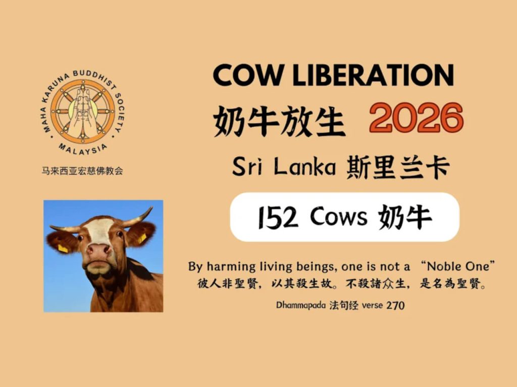 【𝐌𝐚𝐥𝐚𝐲𝐬𝐢𝐚 𝐌𝐚𝐡𝐚 𝐊𝐚𝐫𝐮𝐧𝐚 𝐁𝐮𝐝𝐝𝐡𝐢𝐬𝐭 𝐒𝐨𝐜𝐢𝐞𝐭𝐲】𝟏𝟑 𝐀𝐩𝐫𝐢𝐥 𝟐𝟎𝟐𝟔 | 𝟏𝟓𝟐 𝐂𝐨𝐰𝐬 𝐖𝐞𝐫𝐞 𝐋𝐢𝐛𝐞𝐫𝐚𝐭𝐞𝐝 𝐢𝐧 𝐒𝐫𝐢 𝐋𝐚𝐧𝐤𝐚 On 29 March 2026, a total of 152 cows were liberated in Sri Lanka. In Buddhism, giving fearlessness for other living beings is called as “Abhaya Dana” and it is one of the greatest Meritorious Deeds. By liberating the cows, […]